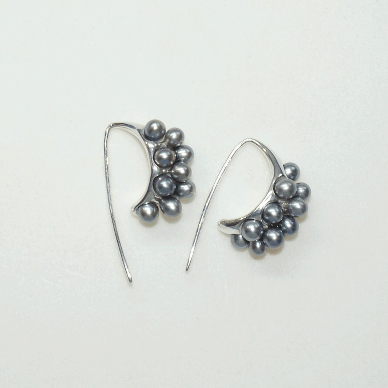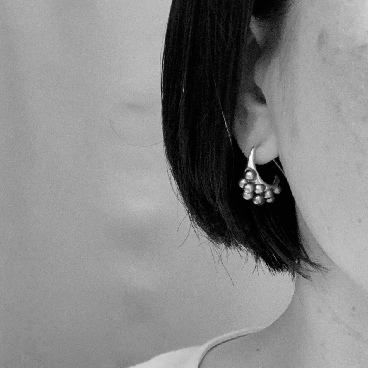 パール粒がこんもりと盛られたボリュームのあるピアス。ドレッシーになりがちなパールジュエリーですが、小粒をいっぱい盛ることでカジュアルテイストに仕上がっています。