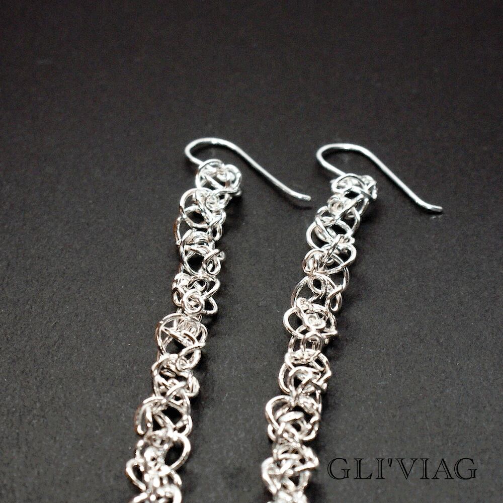 SILVERのくるくるっとしたパーツが連なって、連なって、連なったピアス。