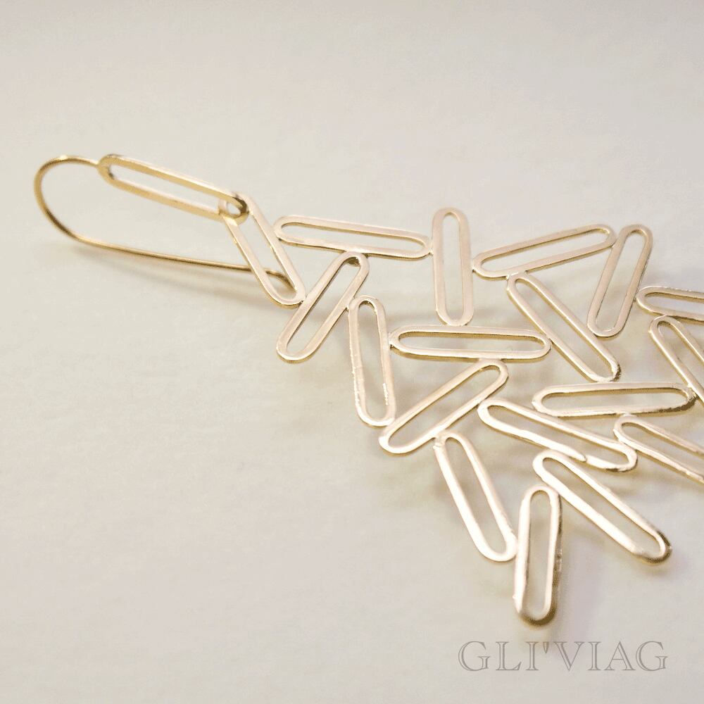ゴールドの輝きが魅力的なピアス。シンプルデザインですが、インパクト大の18金ピアス。個性派のファッションを好む方にはお勧めします!存在感ありの視線を感じるジュエリーです。色柄ものの服にはより一層の派手さ、ワントーンのシンプル服には耳元に華やかなゴールドでアクセントをつけるのもお洒落です。